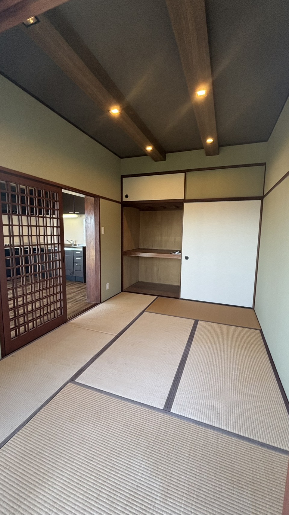 今回はシンプルな内装のお部屋でこれまでご紹介したⅠ・Ⅱに比べミッドセンチュリー感は控えめですが、おしゃれで落ち着いた和室もありアジアンエスニックなリラックス空間に最適です。